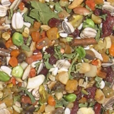 Natures Garden Blend Conure is a seed based mix blended with the very best ingredients. Designed for conure sized parrots this mix contains; Banana, Papaya, Pineapple, Raisins, Canary seed, Yellow millet, White millet, Red millet, Hulled sunflower, White sunflower, Cracked corn, Peanuts, Green Peas, Cranberries, Sweet Potatoes, Peeled oats, Apricots, Apple, Carrots, Safflower, Barley, rapeseed, Linseed, Thistle, Japanese millet, Spinach flakes, Pumpkin seeds, Wheat, Soynuts, Dari, Milo, Pinenuts, Almonds, Walnuts, Hempseed, cashews