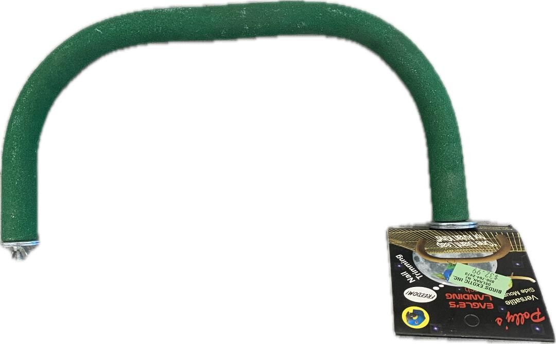 A long, sandy textured, U-shaped perch that is designed to create the perfect nail trimming surface for inside or outside of the cage.