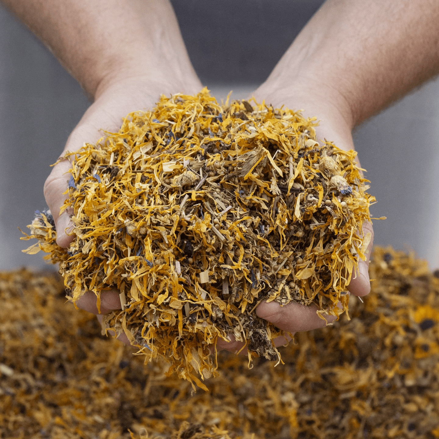 Cold-brewing: Add 1 teaspoon of tea to every 8oz of cool or room-temperature filtered water. Seal container with lid and leave at room temperature or refrigerate for 8-12 hours. Strain off solid components which can be added to fresh foods so as not to waste tea leaves, flowers, herbs, etc that have been steeped.