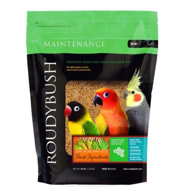 Use this diet when switching your bird from its old diet to Roudybush. Continue to feed to adult birds that are not laying eggs or feeding chicks. Lories and lorikeets, which will accept this diet, will have drier droppings than they have on nectar. If you have a bird that is a chronic egg-layer or a bird with a tendency to develop hypocalcemia (like African Greys), mix 2/3 Maintenance with 1/3 High-Energy Breeder to supply more calcium and vitamin D3. Do not give additional vitamin or mineral supplements. Fresh fruit and vegetable treats may be given as a minor part of the diet.